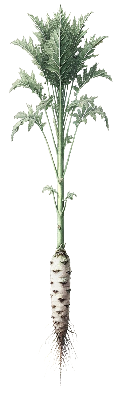 Maca root (Lepidium meyenii) is a cruciferous vegetable native to the high Andes of Peru. It grows at altitudes of 3,500 to 4,500 meters in harsh, rocky terrains where few other crops can survive. The plant resembles a radish or turnip, with a fleshy root that varies in color from yellow to red, purple and black. Its ability to thrive in extreme conditions makes it a vital crop for indigenous Andean communities. Maca has been cultivated for over 2,000 years and holds significant cultural importance in Andean societies. It was traditionally used as both a food source and a medicinal herb, believed to enhance fertility and stamina. Inca warriors reportedly consumed maca to boost their energy and strength before battles.