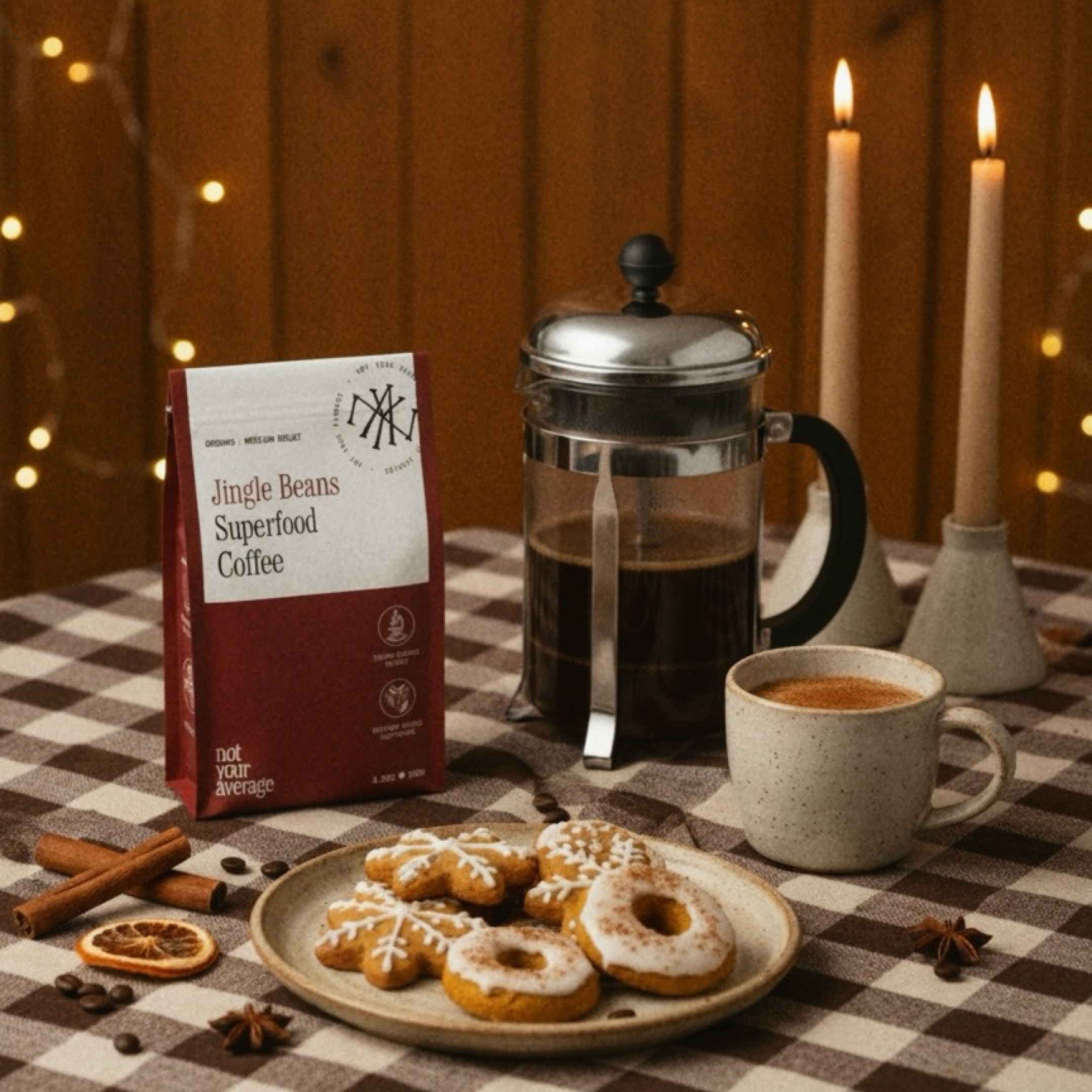 A modern take on a holiday classic – crafted from organic specialty coffee, delicately infused with warming winter spices and a hint of caramel-like sweetness from date crystals. A luxurious daily ritual for chilly mornings or a thoughtful gift for someone you love.